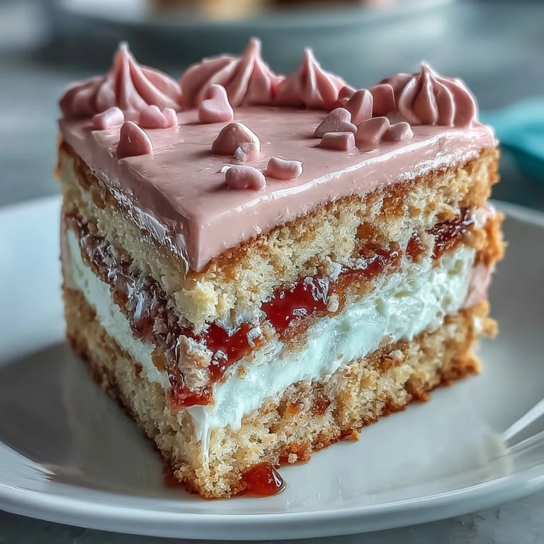 I brought this to a Valentines potluck once and watched grown adults giggle as they read the candy messages before taking a bite. Someone called it a fake cake because it skips the baking but tastes just as indulgent as anything from a bakery. A neighbor asked for the recipe three times in one evening. I love how something this playful can still feel elegant when you smooth that pink frosting just right. Its become my go-to whenever I want to surprise people without stressing over timing or temperature.