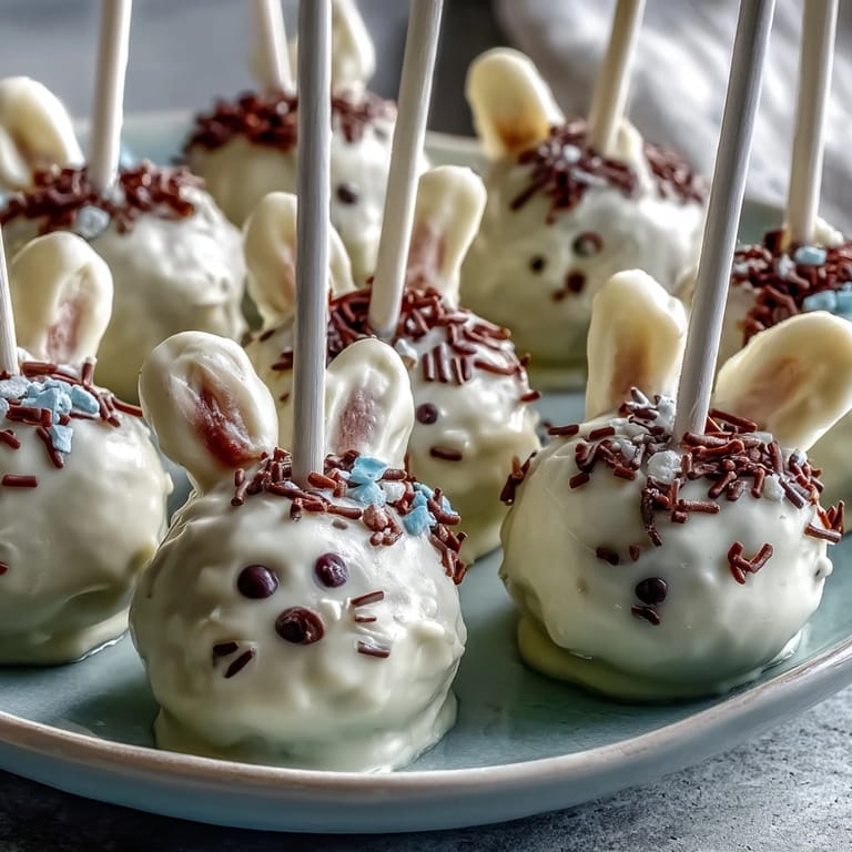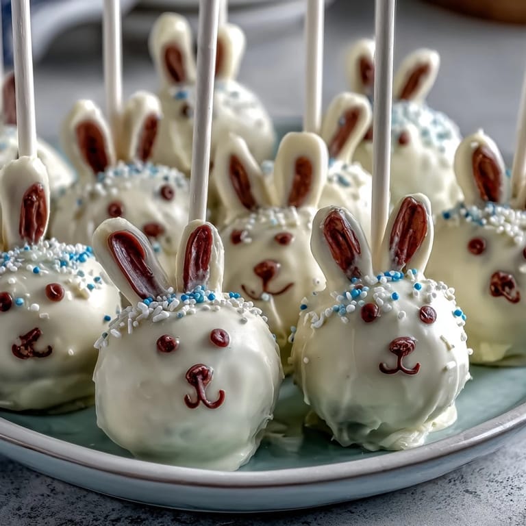 Pin It My daughter came home from school one March afternoon with a crumpled picture she'd drawn of a bunny, and suddenly Easter felt urgent. We decided right then to make something special for her class party, and these cake pops seemed like the kind of project that would make her eyes light up. There's something magical about turning cake crumbs into little creatures, watching a plain sphere transform into a bunny with personality. That afternoon we discovered it wasn't just about the baking—it was about the decoration, the mess, and her tiny hands pressing on candy ears.