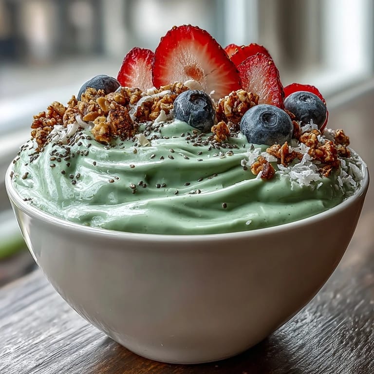 Pin It There's something almost meditative about whisking matcha into a blender on a quiet morning, watching that earthy green powder transform into something ethereal and creamy. My sister introduced me to this smoothie bowl during a wellness phase that actually stuck, and I was skeptical at first, wondering if it would taste like grass clippings. But the Greek yogurt's tanginess balanced with a touch of honey created this unexpectedly comforting breakfast that felt like both indulgence and self-care at once.