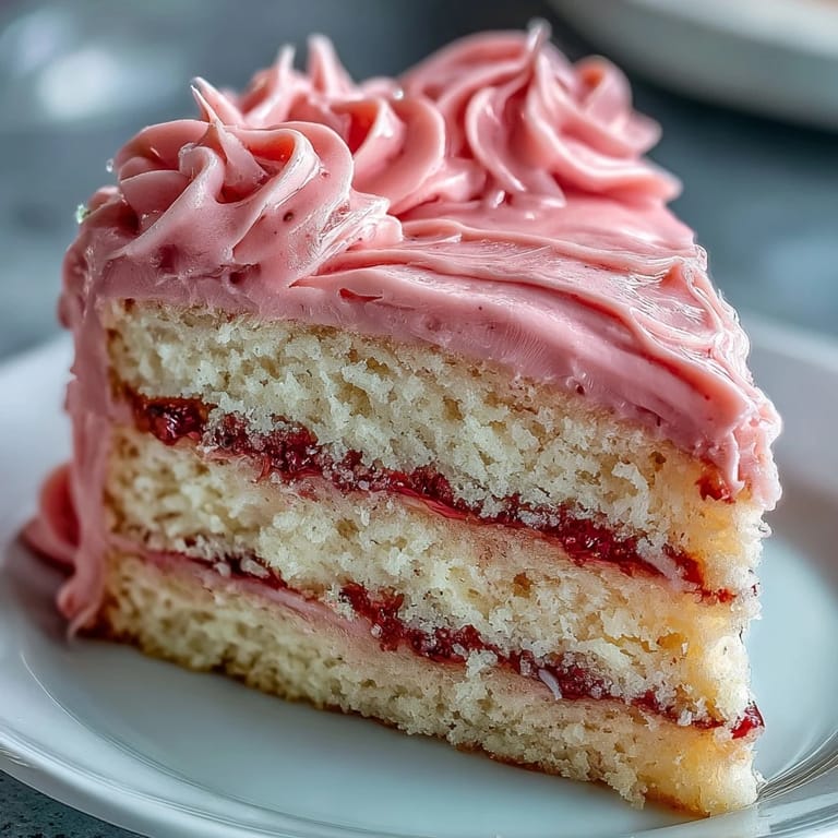 - Garnish with fresh strawberries and edible glitter or sprinkles if desired. Chill for 30 minutes before slicing for clean layers.