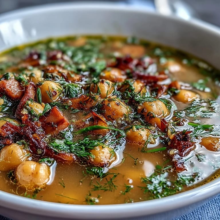 Pin It The soul of this soup lies in its layers. It begins the way so many great soups do — with olive oil, onion, carrots, and celery gently softening in a wide pot, filling the kitchen with that unmistakable aroma of a meal being built from scratch. Garlic follows, then diced ham, which begins to release its smoky, salty character into the base. When the broth and chickpeas join the pot along with a bay leaf and dried thyme, everything melds into a deeply savory foundation. The final flourish — lemon juice, lemon zest, and a generous handful of fresh dill — transforms the soup entirely, cutting through the richness and giving it a zesty, almost springlike finish. This is a recipe that rewards patience and simplicity in equal measure.