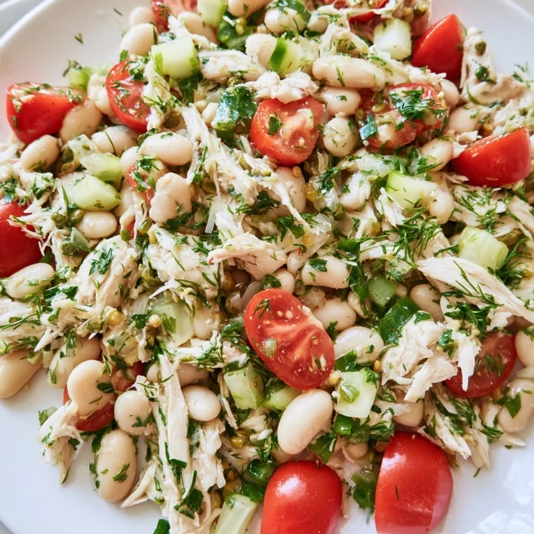 Pin It This salad came together on a Wednesday afternoon when I had leftover roast chicken and absolutely no energy for anything complicated. I stood at the counter, staring into the fridge, and spotted a can of white beans I'd forgotten about. The lemon on the cutting board still smelled sharp from breakfast tea. What started as scraps turned into something I now crave on repeat.