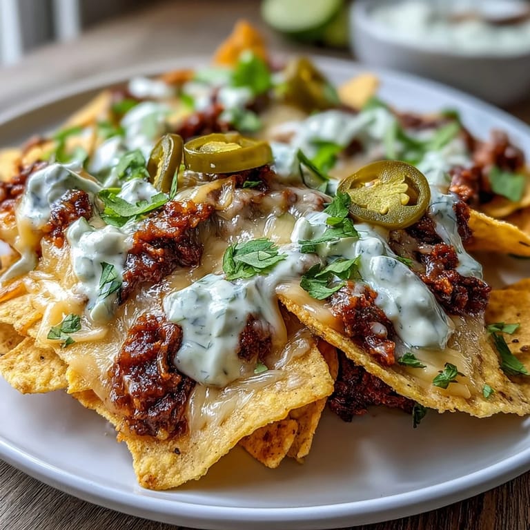 These nachos pair perfectly with a cold lager or a refreshing margarita to complement the rich and spicy flavors. Serve them as the centerpiece of your appetizer spread for game days, family gatherings, or casual parties. Add extra sour cream or guacamole on the side for guests to customize their plates.