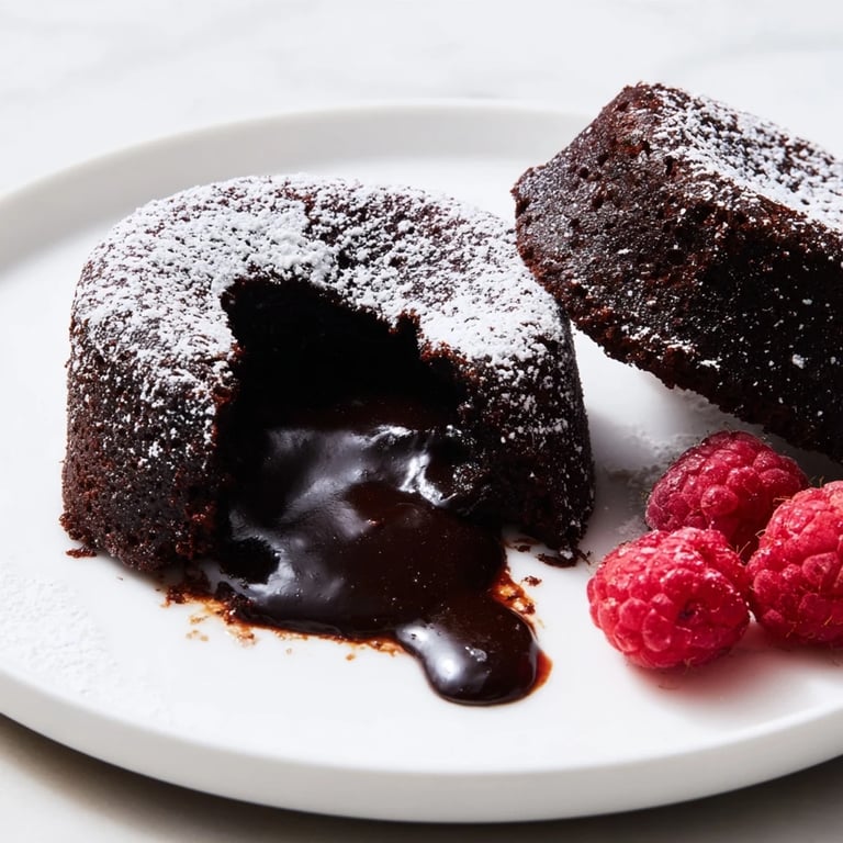 Pin It Decadent individual chocolate cakes with a warm, gooey molten center — perfect for an elegant dessert or a comforting treat.