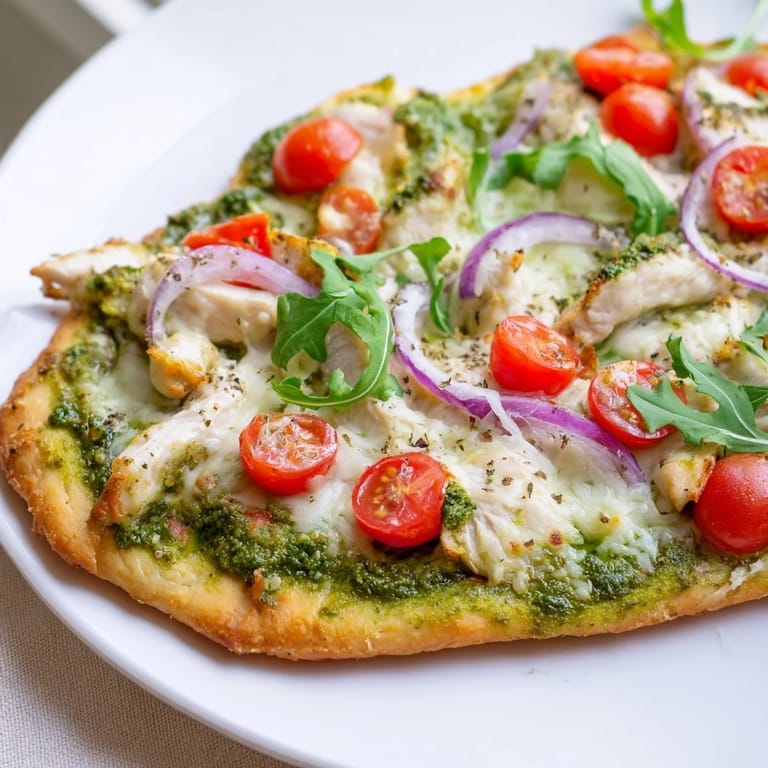Pin It There's something about assembling food on a flatbread that makes you feel like you're composing something special rather than just cooking dinner. One evening, I pulled out a store-bought flatbread with no real plan—some pesto from the fridge, leftover roasted chicken, a handful of mozzarella—and within twenty minutes, something restaurant-worthy emerged from my oven. It became the kind of meal I now make when I want to impress without the fuss.