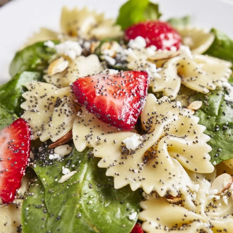 Pin It Last May I was frantically searching my refrigerator for something to bring to a potluck, throwing together random containers and half-used ingredients. That chaotic afternoon produced this pasta salad, and now it's the most requested dish at every gathering. The way sweet strawberries meet tangy feta and that honey-kissed dressing still catches me off guard every single time.