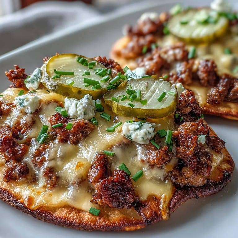 Pin It One Tuesday night, my partner came home craving a cheeseburger, and I was staring at a pack of garlic naan that needed using up. Instead of defaulting to the usual burger routine, I thought, what if I just mashed these two worlds together? Twenty minutes later, we were biting into something that felt both comfortingly familiar and unexpectedly fun. These Cheeseburger Garlic Naan Pizzas became our go-to when we want dinner that feels a little bit special without the fuss.