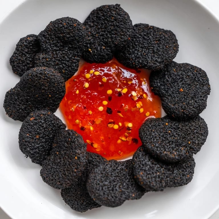 The spice in this dish should surprise but not punish. I've learned that most guests appreciate a slow-building heat that lets them taste the other flavors first—the sweetness of the jelly, the earthiness of the charcoal cracker. If you're cooking for people who love intense heat, add minced fresh chili or increase the hot sauce, but always err toward less heat initially since everyone can ask for spicier next time.